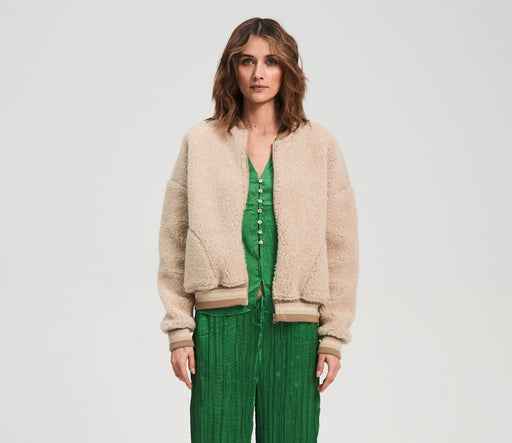 Vollständige Details anzeigenKurze, leichte Bomberjacke, mit gesenkten Schultern. Das Modell wird mit Reißverschluss zugemacht und verfügt über zwei Seitentaschen. Der Kragen,...